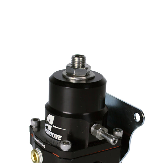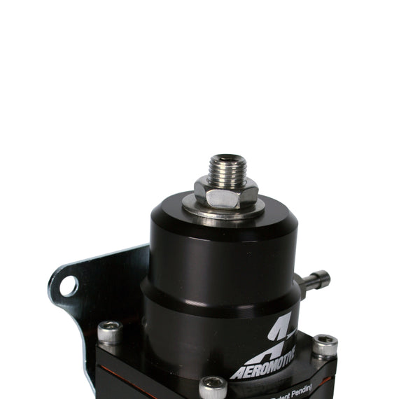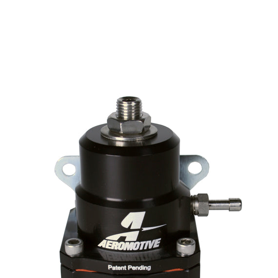 This next generation A1000 EFI regulator features legendary Aeromotive flow and pressure control in?a new body, profiled for reduced size and weight.? This new, patented design features a deep, bright-dip black anodized finish on the cap and base, with AN spec ORB (o-ring boss) style inlet/outlet and return ports. In addition to the aesthetic enhancements, this next generation version A1000 regulator provides a distinct visual cue that you?ve purchased a genuine, Aeromotive EFI regulator, ensuring our valuable customers are not tricked into purchasing an inferior, knock-off or counterfeit component like so many flooding the market from across the ocean. On the street and at the track, A1000 regulators have logged more miles, laps and passes than any other performance EFI regulators in the world! High performance, adjustable EFI regulator designed for medium to high horsepower applications. This regulator features Aeromotive?s High-flow design, superb pressure control, and legendary durability. Engineered for A1000 class and smaller pumps. Gas, ethanol, methanol, and diesel compatible. 40-75 PSI adjustable base pressure range. 1:1 vacuum/boost reference capability. 1/8? NPT dedicated gauge port. (2) ORB inlet/outlet ports. (1) ORB return port.
