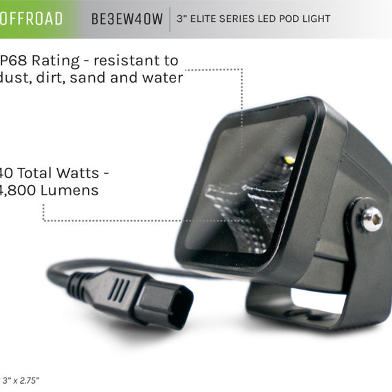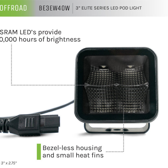 The DV8 Elite Series Lights are a perfect addition to your rig when exploring in the dark. These new lights feature a bezel-less housing and small heat fins for a sleek and stylish finish. The OSRAM LEDs provide significant brightness and are rated to 50,000 hours. Our indirect reflector improves the direction of the light and reduces glaring and hotspots. The UV-resistant lens is shatterproof and designed to whisk away ice and water. All Elite Series Lights have an IP68 rating, resistant to dust, dirt, sand and water.