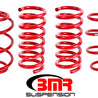 There is nothing like the aggressive look of a car with the right stance! Over time, stock springs sag, get rusty, and simply wear out. BMR Suspension believes the right springs go beyond looks?your S550 needs to perform, too! All BMR springs are manufactured from chrome silicon high-tensile spring wire, and are cold wound on a CNC coiling machine. The CNC coiling head can adjust the spring diameter in real time to ensure that every spring is exactly the same. This guarantees that your right spring matches your left spring. Every BMR spring is compressed solid at the factory, not once, but twice. This gives the spring its permanent set, and guarantees no sag. BMR springs are stress-relieved at 750 degrees F, ensuring most stresses induced during the winding process are eliminated. All springs are then shot-peened to eliminate residual surface stresses. Many spring manufacturers skip this step, but BMR insists on this operation as part of our spring manufacturing process. Every spring is computer tested as the last step?every spring, not just a sample from each batch. Each spring is loaded in the spring tester at the factory, then compressed and the CNC load cell measures the force for a variety of spring lengths. This allows BMR to offer a LIFETIME WARRANTY against spring sag. Blending aesthetics and performance, BMR has designed the SP086 for the drag race crowd who want to the ultimate in straight-line acceleration. These springs will lower your S550, and feature a fine-tuned spring rate (150 lb/in front, 800 lb/in rear) to give you great handling and a smooth ride. The linear spring rate offers plenty of support, while remaining soft enough for great weight transfer. When performance and looks are a must, rely on BMR Suspension! Installation time is about 3-4 hours. Proudly made in the U.S.A. NOTE: This product was not engineered for a V-6 or 4-Cylinder EB Mustang, nor has it been tested on them.