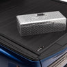 The Retrax IX is a flush-mounted retractable tonneau cover constructed of durable aluminum slats linked by a strong elastomer hinge, helping to eliminate the opportunity for water and debris to enter your truck bed. When combined with the UV-resistant matte finish powder coat, the cover helps keep your truck bed and cargo protected and secure in the roughest of conditions. The Retrax IX's convenient release handle allows the cover to roll into a custom spiral canister at the front of the bed, protecting the cover and reducing wear and tear. Sealed roller bearings inside the aluminum rails deliver smooth, frictionless operation with no binding and virtually eliminate springs and failure-prone moving parts. Retrax IX's unique, adjustable latch stops allow you to secure your cover in any three positions of your choice for the ultimate in hauling capacity and flexibility, letting you use your truck how you need to. This cover, manufactured in the U.S.A. with global materials, installs easily in just 30 minutes, and the "No-Profile" appearance is sure to keep your truck looking good and cargo secure for years to come.