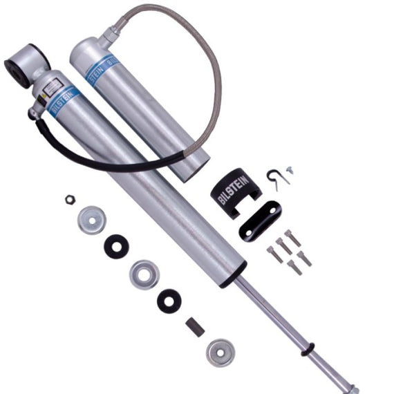 Bilstein B8 5160 remote reservoir shock absorbers are designed as a direct fit solution for lifted trucks and SUV’s. The remote reservoir will offer increased cooling capacity and wheel travel to optimize overall performance compared to a traditional shock absorber. These shock absorbers feature a monotube design for consistent fade free performance and utilize velocity sensitive digressive valve settings which are tuned for each specific application. Each shock absorber is fitted with a unique 360 degree swivel banjo hose fitting, providing a clean, low profile installation. B8 5160 remote reservoir shock absorbers will increase overall durability of your vehicle allowing you to conquer the harshest of off-road environments.