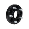 Spacers can only be used with wheels that have cut-outs (facing the hub) to clear the stock studs. Please check as follows: Original stud length (i.e. 35mm) minus spacer-thickness (i.e. 25mm) = 10mm excess stud length. The cut-out should have a depth of 11mm.