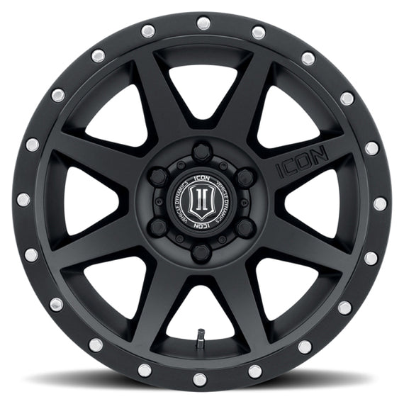 Bring a bold new look to your ride with the all-new ICON Alloys REBOUND! Combining sharp lines, a concave spoke design, and "ICON-optimized" dimensions, these wheels will increase both the form and function of your Jeep, truck, or SUV. Staying true to the ICON Alloys approach, the REBOUND has been engineered to maximize caliper clearance and optimize wheel position for un-hindered suspension travel and steering function. Backspace dimensions and wheel offset have been strategically developed to reduce scrub radius, improving all-around handling and ride quality and making a set of these wheels the perfect complement to an ICON Vehicle Dynamics suspension system.