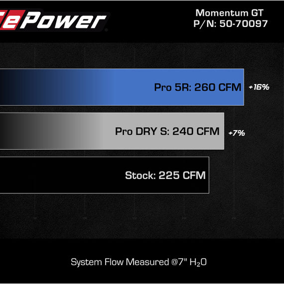 Large Three Layer Performance Air Filter:This 6-1/2” tall 360-degree radial flow air filter features a 3-1/2” round flange and our oil-free Pro DRY S media with three layers of synthetic media for maximum convenience. Its progressive layering provides great filtration efficiency and dust holding capacity, while not requiring the use of oils. This media is best suited for street and light off-road use.Unique One-Piece Housing:The smooth one-piece sealed housing, constructed of heat-resistant XLPE (cross-linked polyethylene) polymer, features our patent-pending filter-to-housing interface. A large, clear sight window allows for hassle-free filter inspection, without having to disassemble your system.Dyno-Tuned Intake Tube:This system features a high quality, computer-designed, dyno-tuned intake tube to achieve maximum power gains while maintaining a perfect fit. Its XLPE material is heat-soak resistant and extremely durable.Hassle-Free Installation:This intake is designed to use factory mounting locations, minimizing the use of unnecessary hardware, ensuring a perfect fit every time. Its revolutionary design, featuring our patent pending filter-to-housing interface uses half the number of parts of a traditional cold air intake system.Premium Components:Stainless-steel worm clamps are included for strength, and a premium bellows coupling allows for ample flexibility.