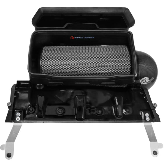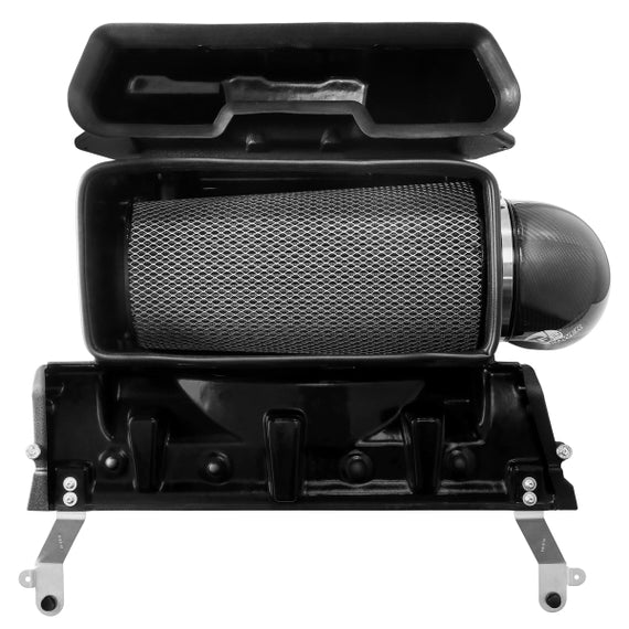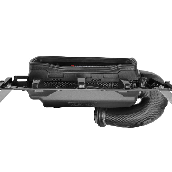This massive 18” tall 360-degree radial flow air filter features our pre-oiled black Pro 5R media with five layers of progressively finer cotton gauze media for maximum performance. It provides your engine with the largest amount of high-flowing air and delivers the highest power gains in most cases. This media is perfect for street and/or track use. This air filter is surrounded by expanded metal that provides additional protection, preventing filter collapse and direct impact. The included massive air filter is surrounded by an open-element XLPE (cross-linked polyethylene) polymer housing that minimizes warm engine air for maximum performance. Its open design allows for easy viewing of the air filter and delivers an aggressive Air Intake sound. The housing incorporates both the factory hood air inlet scoop and the grille inlet using no additional hardware. The lightweight tubes are computer-designed to achieve maximum power gains while maintaining a perfect fit. Manufactured from 100% twill weave carbon fiber, they feature zero fiberglass and are clear-coated for the highest quality construction. Premium stainless steel clamps and a flexible silicone coupling are used for strength and durability while also providing the most secure installation available.
