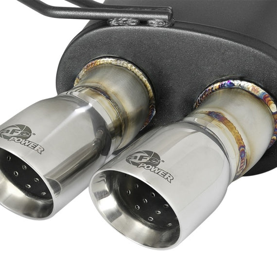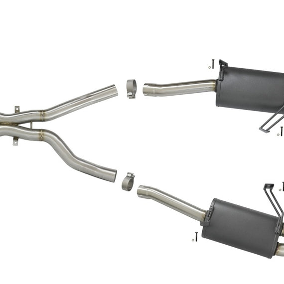 Unleash power and sound while improving the looks on your Z4 M Coupe with this MACH Force-Xp 2-1/2" 304 stainless steel cat back system. The larger diameter, mandrel bent tubing along with high-flow, stainless steel mufflers are less restricting for maximum flow, optimum sound and long lasting good looks. 100% hand TIG-welded for proven quality and durability, this MACH Force-Xp system is finished off with quad 3" polished, stainless steel exhaust tips with laser-etched aFe POWER logos to give your E86 a track-prepped, custom look. Performance Gains: In testing, the cat-back exhaust system resulted in gains up to +7 horsepower and +15 lbs. x ft. of torque, as measured on our in-house dyno. Quad 3" Diameter Stainless Steel Tips: Quad, rear exit, 3" diameter, angle cut stainless steel exhaust tips with an aFe POWER logo laser-etched on the top for a custom look. High-Flow Performance Muffler: Incorporating less-restricting dual, high-flow, 304 stainless steel mufflers into the exhaust system to eliminate exhaust drone, maintaining a smooth, unique sound. 2-1/2" 304 Stainless Steel Tubing: Less restrictive than stock exhaust allows maximum flow and low turbulence; increasing torque, horsepower and improved throttle response. Perfect Fit: OE-style bayonet hangers are used to maintain a stable pipe location during high vibration and high heat conditions. The Bayonet tip holds the hanger bushing in place for an OE style fit that does not change with time. Hassle-Free Installation: This exhaust system is designed to be a true bolt on system with no cutting or modifications required. Quality hardware and clamps are included for a hassle-free installation.