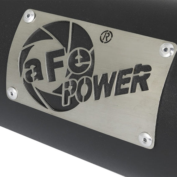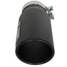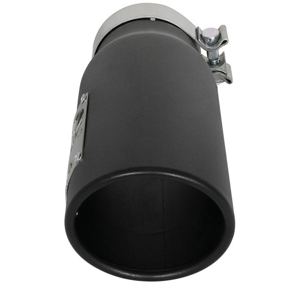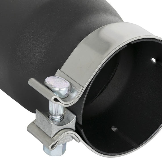 aFe Power is proud to introduce the all new diesel exhaust tip. This tip comes with a black finish and is designed to fit 3-1/2" exhaust systems. With a 3-1/2" inlet x 4-1/2" outlet and 12" inch length, this single-walled, angle cut rolled tip comes with a unique laser-cut aFe Power logo plate riveted on for an aggressive style. Leak-Free Seal: A high quality stainless steel band clamp is used for a complete 360 degree sealing surface. aFe Badging: The exhaust tip comes with a unique laser-cut aFe Power logo plate riveted on for an aggressive style.