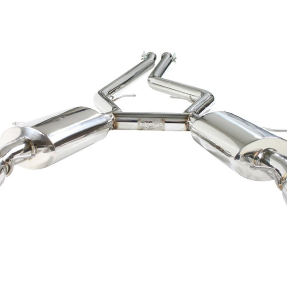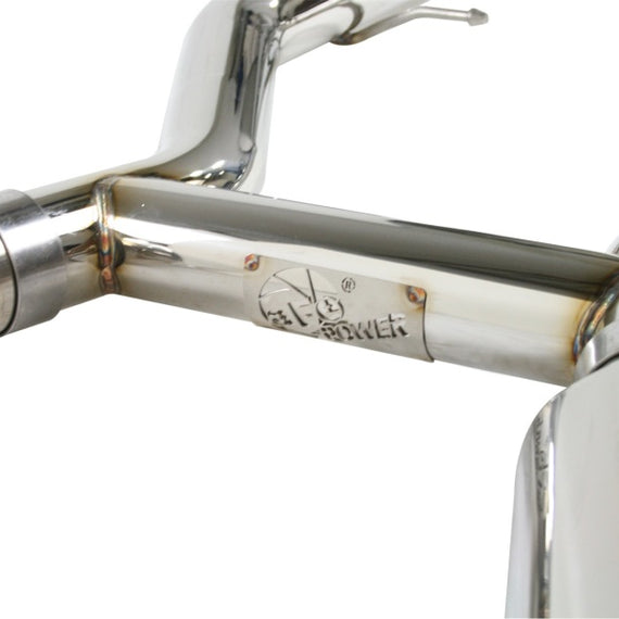 The Mach Force XP cat-back exhaust system produces 11 hp and 10 lbs./ft. of torque. constructed from 2.75 in. mandrel bent 304 hand brushed stainless steel and utilizes a unique crossover pipe that helps to equalize exhaust pressure and tunes the exhaust pulse. Comes with dual 3.5 in. polished 304 stainless steel tips and muffler to build a mellow yet powerful sound. Engineered and manufactured in our Corona Ca manufacturing facility. All systems use factory mounting locations providing stability and hassle-free installation. High quality band clamps are used for a complete 360 deg. sealing surface. A free flowing muffler is used to absorb high pitch tones producing a powerful sound and unleashing all available horsepower and torque. The crossover balance tube equalizes and evenly distributes exhaust pulses traveling through the exhaust system. This not only creates more efficient flow and better performance it also reduces sound decibels ultimately minimizing exhaust drone.